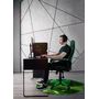 Além de remover o atrito entre as rodas da cadeira e o piso, ele protege o piso de arranhões e é facilmente lavável com água e sabão neutro.
